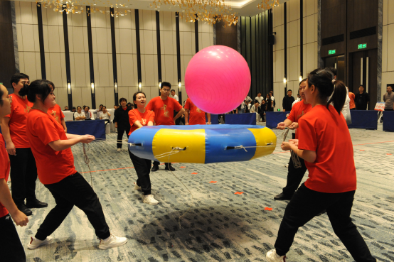 本次趣味運(yùn)動(dòng)會(huì)精心設(shè)置了一系列豐富多彩的項(xiàng)目。在“漢諾塔”項(xiàng)目中,隊(duì)員們?nèi)褙炞ⅲ\(yùn)用智慧和策略移動(dòng)圓環(huán),展現(xiàn)出縝密的思維能力;“云梯障礙賽”現(xiàn)場(chǎng),選手們敏捷地穿越各種障礙,身姿矯健,如同勇敢的戰(zhàn)士沖鋒陷陣;“開心消消樂”讓大家沉浸在趣味的消除挑戰(zhàn)中,歡聲笑語不斷;“飛盤積分靶”處,飛盤在空中劃出優(yōu)美的弧線,精準(zhǔn)地命中目標(biāo),引來陣陣喝彩;“眾星捧月”項(xiàng)目中,隊(duì)員們齊心協(xié)力,共同托起象征著團(tuán)隊(duì)力量的“月亮”,配合默契;“步步高升”則考驗(yàn)著團(tuán)隊(duì)的協(xié)作和耐心,大家一層一層搭建起成功的高塔。而激動(dòng)人心的“拔河”比賽,更是將運(yùn)動(dòng)會(huì)的氣氛推向了高潮,雙方隊(duì)員們緊握繩索,齊心協(xié)力往后拉,吶喊聲、加油聲此起彼伏。