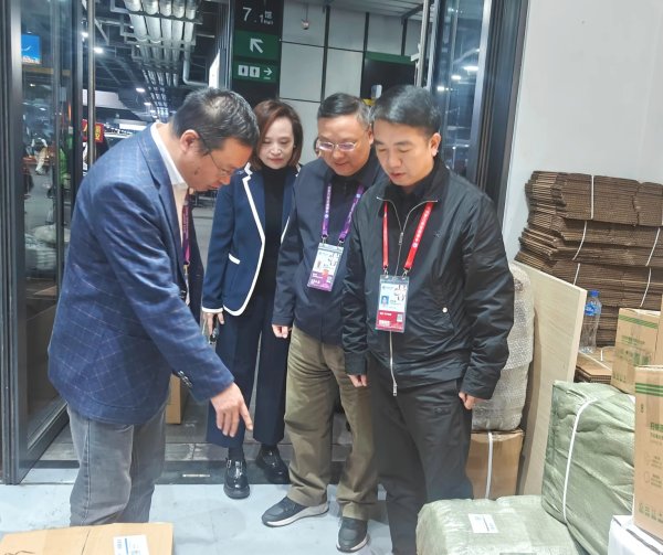 馮力虎一行認(rèn)真聽(tīng)取了本屆進(jìn)博會(huì)郵政服務(wù)保障工作的介紹,并向現(xiàn)場(chǎng)工作人員詳細(xì)詢問(wèn)了主題郵局點(diǎn)位在各大展會(huì)期間的的寄遞服務(wù)情況及進(jìn)博期間館內(nèi)郵件的投遞頻次及發(fā)運(yùn)攬收現(xiàn)狀。