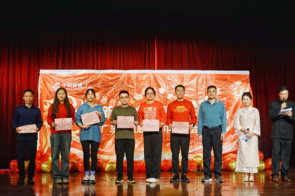 與此同時,節目中穿插了抽獎環節,各工會小組也精心準備了互動游戲,大家齊齊參與,現場歡聲笑語不斷,進一步加深了同事間的情誼。最終經過評委、觀眾的共同投票,本次才藝展示會評選出了前八名優秀表演團隊,并現場頒發了興趣小組長、優秀工會小組長等獎項,以表彰他們在促進團隊建設、豐富員工文化生活方面所做出的貢獻。