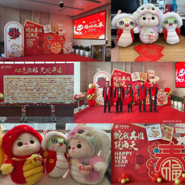 祥蛇賀歲辭舊去,瑞氣呈祥迎新來。2月5日,春節(jié)假期后首個(gè)工作日,泰州市分公司領(lǐng)導(dǎo)班子向返崗員工集體拜年,并送上新春祝福。在市分公司一樓大廳,“福蛇迎春”“蛇我其誰躍海天”等大紅背景標(biāo)語(yǔ),營(yíng)造出了濃濃的節(jié)日氛圍。在熱情洋溢的致辭后,公司領(lǐng)導(dǎo)班子為員工們送上蛇年吉祥公仔——“莓煩惱”“有錢花”,寓意好運(yùn)和祝福。在“心愿換福 靈蛇開運(yùn)”的紅包墻下,員工們提筆寫下自己的新年愿望,祝愿郵政事業(yè)蒸蒸日上,祝愿工作家庭順心美滿。隨后,領(lǐng)導(dǎo)班子成員分批前往各支局、攬投部,向生產(chǎn)經(jīng)營(yíng)一線的員工送上新年祝福。