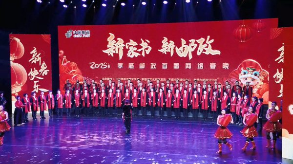 晚會現場氣氛熱烈,伴隨著歡快的旋律,開場舞《歡樂中國》拉開帷幕。整場晚會共上演11個節目,涵蓋歌舞、小品、曲藝、雜技等多種藝術形式。節目內容豐富多彩,既有傳統戲曲,也有剛從武漢郵政藝術團的精彩表演,孝感郵政職工壓軸的《我和我的祖國》,樸實又充滿力量,充分展現了郵政人的精神風貌與時代風采。同時,此次晚會通過多個網絡平臺同步直播,設置了“線上抽獎”“紅包雨”等互動環節,大家紛紛在評論區留言,并送上新春祝福。通過高質量節目與互動形式,本次春晚實現了“破圈”傳播,既展現了郵政企業的文化軟實力,也拉近了與廣大客戶和市民朋友的情感距離。