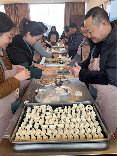 “一碗餃子一片情,個個餃子暖人心”“今年我有福氣啦!快看,我吃到硬幣啦!”“哈哈!你真幸運!”云陽郵政工會提前策劃,布置裝扮好現場,備好餡料,把面和好,大家摩拳擦掌,個個展示了看家本領,現場歡聲笑語,不一會兒,一排排獨具個性、模樣俊俏的餃子擺滿了餐盤,有一手就能捏成“元寶”的,有捏成六褶對稱的,還有捏成狀如麥穗的,各式各樣,賞心悅目。當一盤盤熱氣騰騰的餃子端上桌,大家都為自已的勞動成果感到喜悅,空氣中濃濃的餃子香,也驅散了冬日的寒冷。