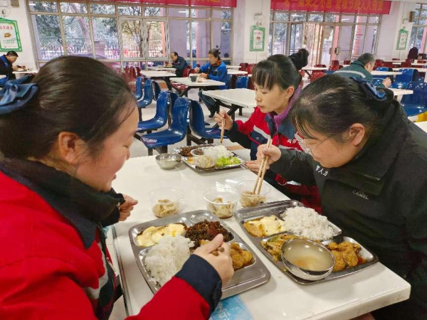 在大小食堂,各部門領(lǐng)導和工會干事們一邊為員工盛取餃子,一邊親切的與員工交流,關(guān)心他們的身體健康,感謝大家在春旺攻堅戰(zhàn)中的辛苦付出,鼓勵大家再接再勵直到奪取春旺完勝。