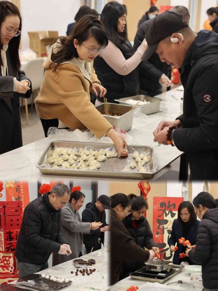 在活動現(xiàn)場,大家分組協(xié)作,有的揉面團(tuán)、有的調(diào)餡料,巧手翻飛間制作出了晶瑩的湯圓和“年年有魚”餃;冰糖葫蘆制作臺前,紅艷艷的草莓與櫻桃番茄被裹上剔透的糖衣,串起陣陣歡聲笑語。