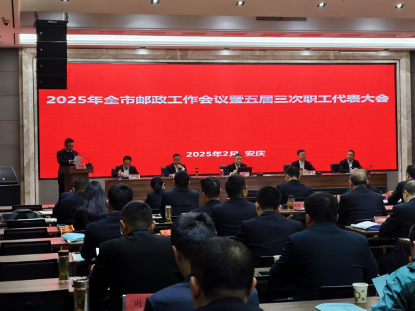 2月17日上午,安慶郵政召開了2025年全市郵政工作會議暨五屆三次職工代表大會。本次會議采取了現場會和電視電話會議相結合的形式召開,全市共設置了1個主會場,7個分會場,64名職工代表參加了會議。會上,市分公司黨委書記、總經理宋武傳達了省公司工作會議精神,并作了題為《守正創新擔使命 五個管理促發展 奮力開創安慶郵政健康可持續高質量發展新局面》的工作報告。同時,大會通報了五屆三次職代會籌備情況以及職工代表調整資格審查情況;聽取了《2024年集體合同履約情況報告》、《2024年業務招待費使用情況報告》、《2024年度全市郵政職工教育培訓經費的提取與使用情況報告》;進行了民主評議,職工代表于各個會場對領導班子及成員進行了評議打分;表彰了2024年度綜合及安全先進。職工代表們切實履行各項職責和權力,完成了大會各項議程。大會最后號召,全市郵政干部職工要在市分公司黨委的正確領導下,向高而立、向實而為、向新而行,以爭先之志、實干之效、創新之舉交出高質量發展持續走在前列的新答卷!