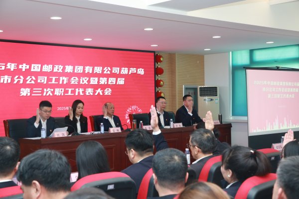 中國郵政集團有限公司葫蘆島市分公司四屆三次職工代表大會于2025年2月25日在市分公司六樓會議室召開,會議認真聽取了徐強總經理所作的《應變克難 篤行創新 自強奮進以實干實績推動高質量發展再上新臺階同心共繪葫蘆島郵政健康可持續發展新藍圖》的工作報告。大會舉手表決通過了徐強總經理的工作報告、財務部作的《財務收支情況報告》和《福利費使用情況報告》、辦公室作的《招待費使用情況報告》和人力部作的《社保、醫保、公積金繳交情況報告》。