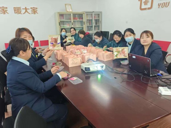 顧村支局職工小家內(nèi)女職工們發(fā)揮巧思,認(rèn)真制作精美的干花裝飾畫。每一個(gè)作品都飽含著對(duì)生活的熱愛與對(duì)節(jié)日的期待,歡聲笑語(yǔ)此起彼伏,共同慶祝屬于自己的節(jié)日。