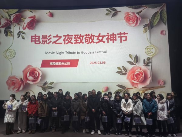 臨潼分公司、高陵分公司、周至分公司、寄遞鐘樓區(qū)域、寄遞北關區(qū)域、寄遞運營中心、組織女職工觀看電影,在集體的觀影活動中感受到節(jié)日的氛圍,感受到企業(yè)對女性的尊重和關愛。