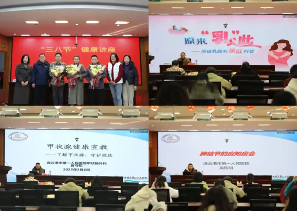 健康講座。特邀連云港市第一人民醫院吳朔明、李淑琴、曹守紀三位專家分別作肺結節、乳腺、甲狀腺預防和防治專題講座,專家用深入淺出、通俗易懂的語言講解了三種疾病的預防和防治知識,給女職工們上了一堂精彩的科普知識講座。市、縣分公司近100名女職工參加了講座。