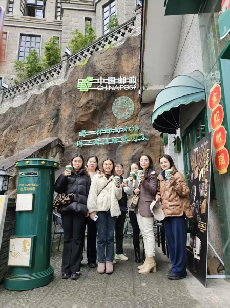 春風拂面,萬物生長。3月7日,信息中心工會組織全體女職工漫步重慶網紅點下浩里,打卡郵局咖啡。郵局咖啡作為新興的網紅打卡點,以其復古的郵局元素與咖啡香的完美融合,為女職工提供了一種新穎而獨特的體驗。郵局咖啡以復古綠為背景,郵筒等標志性元素隨處可見,充滿了中國郵政的獨特魅力。女職工還在明信片上蓋上獨特的郵戳,寄給遠方的朋友或者留給自己作為紀念,增加了文化創意和互動性。