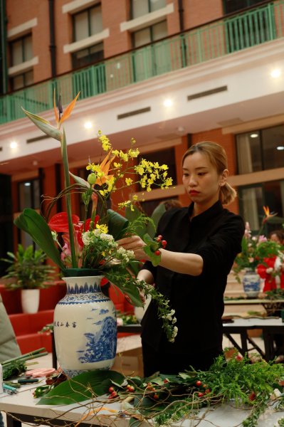本次比賽的主題為“花開中國夢”,期望選手們通過造型優(yōu)美的插花作品,祝愿祖國繁榮昌盛。