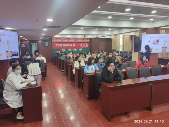 3月21日,時值第19個“世界口腔健康日”到來之際,為增強廣大職工口腔保健意識,普及口腔疾病防治知識,使職工更加及時準確地了解自身健康狀況,岳陽郵政工會根據職工實際需求,唱響工會“四季歌”,聯合岳陽市口腔醫院,在市分公司機關五樓會議室開展了“春送健康”口腔保健知識講座暨口腔義診活動。