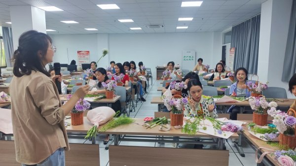 學員們說:“原本以為插花只是簡單地將花枝插入花泥,但實際操作中才發現,每一枝花的姿態、每一片葉子的點綴,都需要用心去觀察和調整。”在老師的指導下,每一位學員逐漸放慢節奏,學著感受花材的自然之美,用雙手去塑造屬于自己的一方花藝小天地。“當作品完成時,看著自己親手創作的花藝,心中有一股成就感。”學員說。