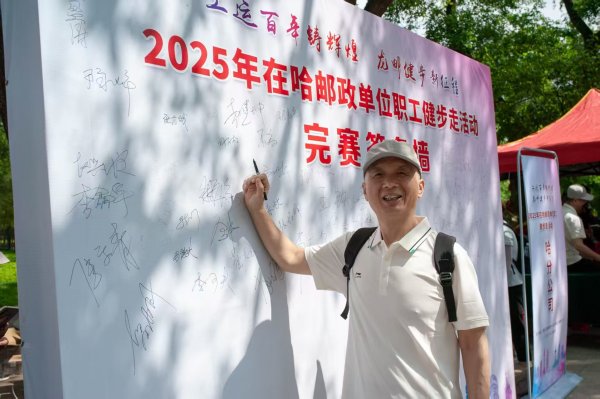 臨近中午,汗流浹背的職工們在終點處簽名墻上都興奮地簽上了自己的名字。職工們表示,要在今后的工作中繼續勇挑重擔、奮發有為,為促進龍江郵政高質量發展而努力奮斗。