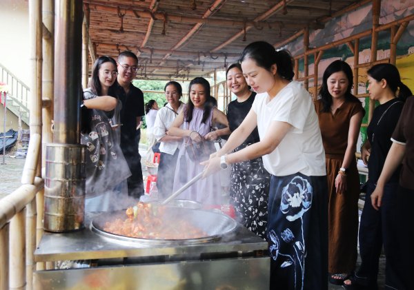 在活動現場,野炊與垂釣環節率先拉開序幕,點燃了現場的歡樂氛圍。大家分工明確、默契配合,有的忙著洗菜、切菜、穿串兒,有的則圍在燒烤架旁,不時翻動著滋滋冒油的五花肉與牛肉;另一邊,有人在鐵鍋前精心燉煮鮮美的干鍋雞和干鍋蝦,陣陣香氣彌漫在整個田園間。而垂釣區更是熱鬧非凡,不時傳來 “我釣上一條啦!” 的驚喜歡呼,為現場增添了不少樂趣。