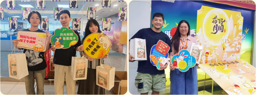 為弘揚中華優秀傳統文化、豐富員工精神文化生活、增強團隊凝聚力,11183廣州中心工會于9月29日開展“花好月圓‘圈’住好禮”主題中秋活動,現場布置溫馨中秋祝福手舉牌,氛圍喜慶。