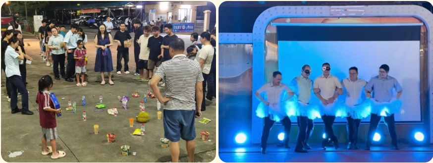 鳳崗分會以“喜迎中秋 歡慶國慶 郵你更團圓”為主題辦游園晚會,設美食體驗區提供水果、燒烤等,員工暢聊歡笑;游戲環節有“九九乘法加速度”“幸運滾滾樂”等,“歡樂套圈圈”的榴蓮大獎將氣氛推向高潮。橫瀝分會在678藝時代廣場辦中秋晚會暨員工生日會,猜燈謎、班組節目表演精彩紛呈,最后為下半年生日員工慶生,滿是溫暖。