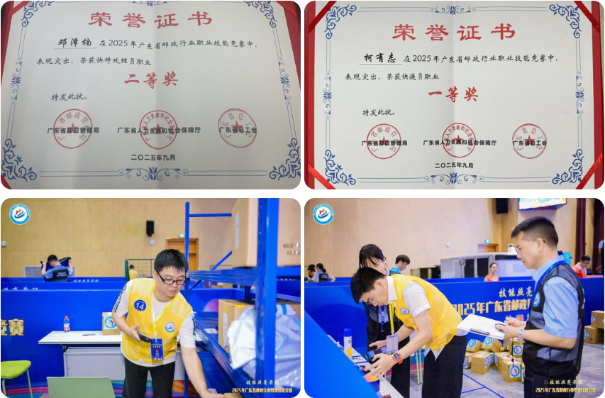 近日,2025年廣東省郵政行業職業技能競賽在江門落下帷幕。由廣州市郵政管理局組建的代表隊憑借全員出色發揮,斬獲團體第一名。其中,廣州郵政員工表現尤為亮眼:柯有志、鄧澤楠分別摘得“快遞員”工種一等獎、“快件處理員”工種二等獎,延續了二人2024年在廣州市郵政行業技能競賽中斬獲同項目冠軍的強勢表現。