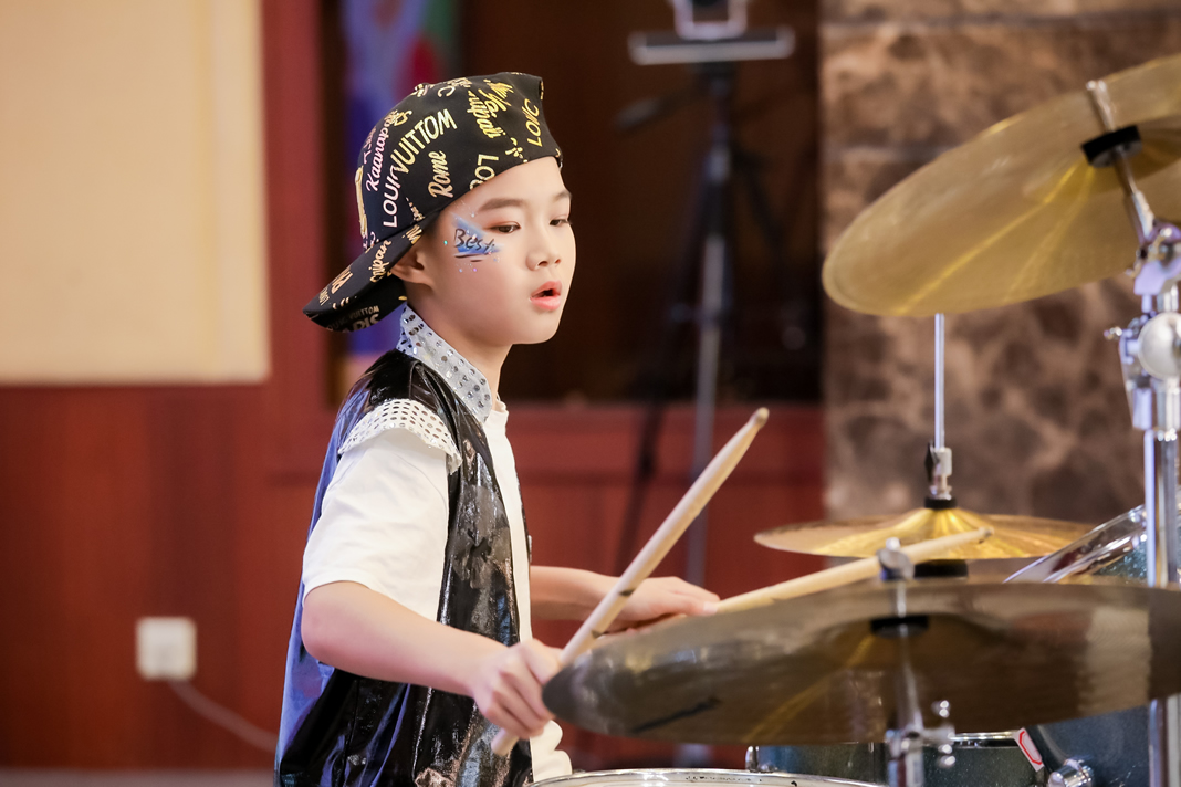 西區郵政局推薦的架子鼓《Teeth》,由富力桃園支局古麗嫻10歲的兒子黃宸輝演繹,強烈的節奏感與酷颯的肢體表現瞬間點燃全場;