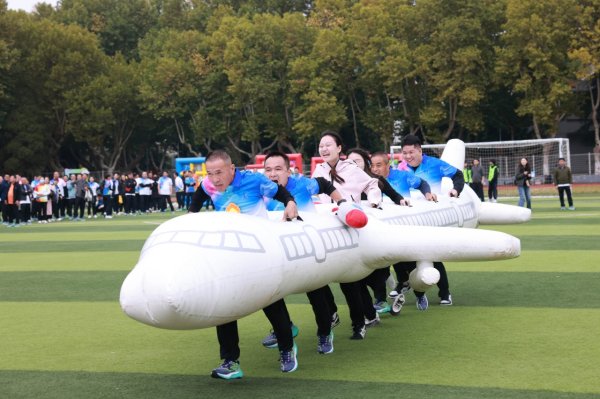 賽場上,各項目精彩紛呈?!叭贾Z炸機”賽道上,隊員們默契配合,步伐一致,向著終點全力沖刺;“運轉乾坤”環節中,大家齊心協力,穩穩托舉器材,穩步前行;“決戰投籃”時,選手們屏息凝神,精準投球,每一次命中都引來陣陣歡呼。而在“不倒森林”里,隊員們眼疾手快,默契換位,守護著共同的“火炬”,展現了高度的協作精神。九宮格足球緊張刺激,多元鏈接考驗團隊智慧。拔河比賽更是牽動人心,各隊隊員緊握繩索,腳踏實地,在加油聲中拼盡全力,將團結與拼搏的精神展現得淋漓盡致。整場運動會笑聲不斷,掌聲連連。每一次沖刺、每一次投擲、每一次換位,都凝聚著鎮江郵政人的汗水與智慧,彰顯著他們的團結與擔當。