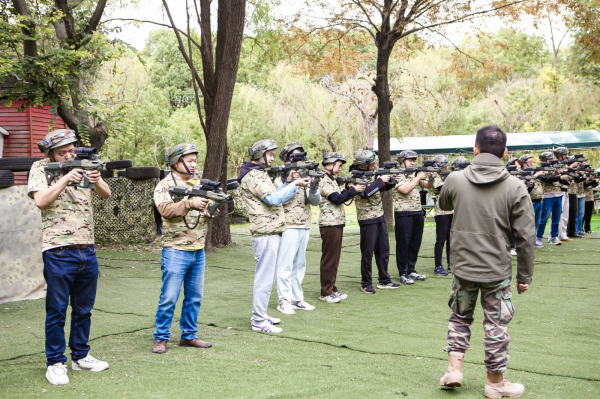 活動伊始,在專業(yè)教練的帶領下,全體員工進行了熱身破冰游戲,迅速消除了彼此的陌生感與拘謹。隨后,大家被隨機分為“雷霆戰(zhàn)隊”、“雄鷹戰(zhàn)隊”兩個小組。各隊成員群策群力,共同設計了響亮的戰(zhàn)隊口號與獨特的隊形,瞬間點燃了現(xiàn)場的火熱氛圍。一場沒有硝煙的“戰(zhàn)爭”即將拉開序幕。大家穿戴好專業(yè)的作戰(zhàn)裝備與護具,手握激光模擬槍,每一位員工都化身為英姿颯爽的“戰(zhàn)士”。活動設置了團隊攻防戰(zhàn)戰(zhàn)術(shù)模式, 在團隊攻防戰(zhàn)中,隊員們深刻體會到防守陣型與進攻路線規(guī)劃的重要性,明白了“攻守兼?zhèn)洹辈攀侵苿訇P鍵,將團隊協(xié)作發(fā)揮得淋漓盡致。