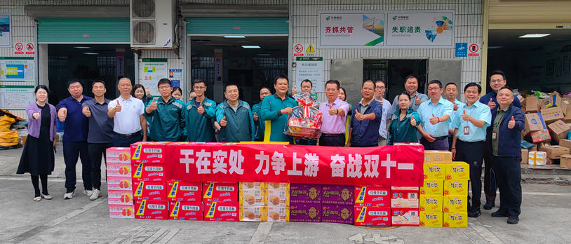 11月11日上午,深圳市郵政分公司領導分五組深入基層一線營攬投部,開展“溫暖服務季”雙十一生產(chǎn)旺季專項慰問活動。領導們?yōu)檫B續(xù)奮戰(zhàn)的郵政員工送上慰問品,以真切關懷點燃全員奮斗熱情,為旺季攻堅注入“暖心動能”。