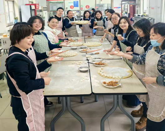 員工們齊聚食堂,分工合作包餃子,現場氣氛熱烈,大家分工協作、各顯其能,有揉面、搟皮的,有調餡、包餃子的,大家手里忙活著餃子、嘴里暢談著冬至,每個人臉上都洋溢著幸福的笑容。每個人包餃子的熟練程度和手法各不相同,但奉獻愛心、助力旺季發展的行動是一致的。人多力量大,不一會兒一個個、一排排形態各異的餃子擺滿了一盤又一盤。
