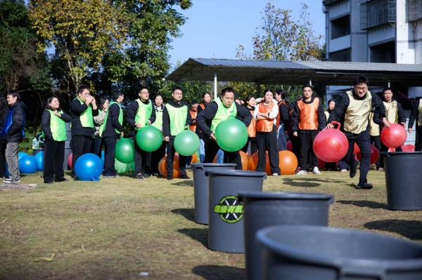 啟動會上,不僅清晰錨定“跑贏行業、提升質效”的核心目標與,明確“靶向攻堅、協同發力”的工作路徑,更設置豐富多樣的團隊互動游戲,讓現場氛圍熱烈高漲。“節奏有氧鼓”環節,大家同心擊鼓、節拍齊鳴,用整齊的韻律奏響奮進序曲;“朱德的扁擔”游戲中,隊員們肩挑“重任”、默契配合,在模擬運輸中傳承艱苦奮斗的紅色精神;“運送炸藥包”項目里,參賽選手小心翼翼傳遞“物資”,既考驗反應速度,更彰顯團隊協作的重要性;“搶種搶守”環節則充滿競技樂趣,大家爭分奪秒完成任務,生動詮釋了郵政人“時不我待、奮勇爭先”的實干作風。每場游戲都妙趣橫生,歡呼聲、喝彩聲此起彼伏,有效釋放了工作壓力,增進了團隊凝聚力。