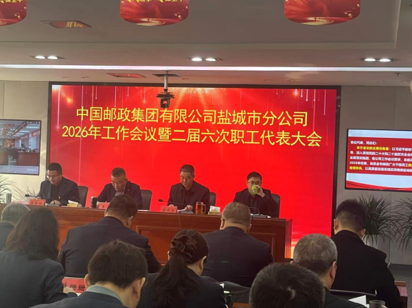 1月28日,鹽城市郵政分公司2026年工作會議暨二屆六次職工代表大會順利召開,會議深入貫徹黨的二十大和二十屆歷次全會精神、中央經濟工作會議精神,全面落實集團、省公司工作會議要求,總結2025年工作,分析形勢任務,部署2026年任務,動員全市郵政廣大干部員工統一思想、堅定信心,實干篤行、奮楫爭先,以高質量發展實績實效確保鹽城郵政“十五五”良好開局。