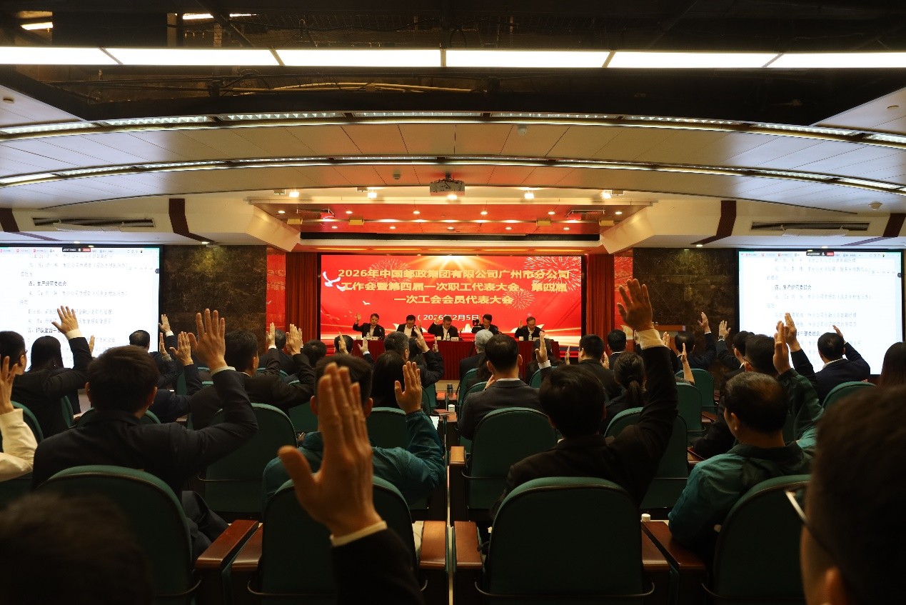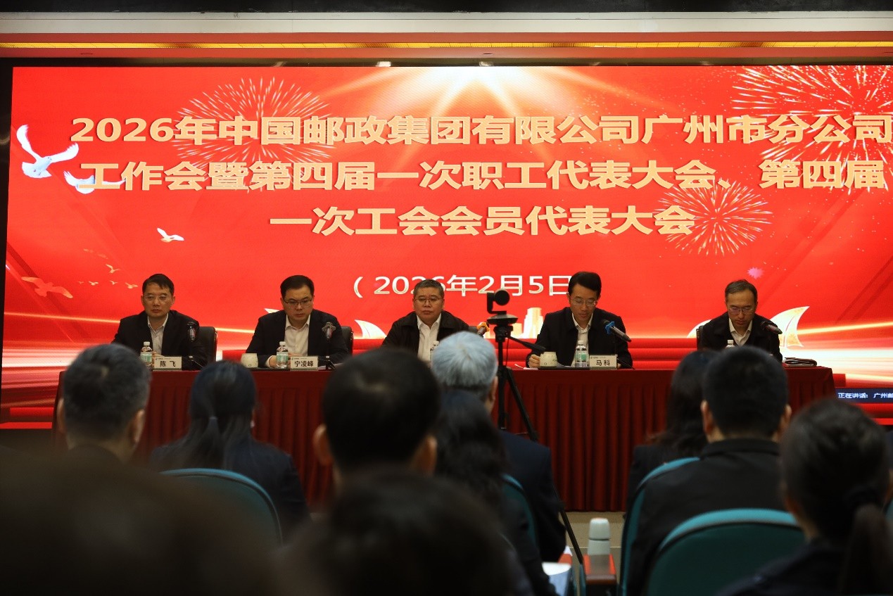 廣州市分公司2026年工作會暨第四屆第一次職工代表大會、工會會員代表大會隆重召開。全市郵政各單位131名正式代表參會。